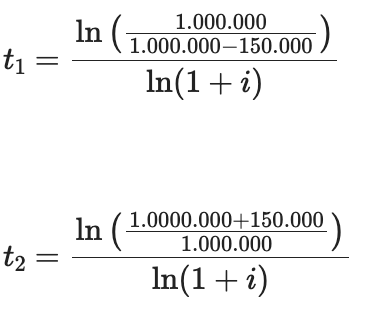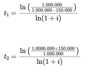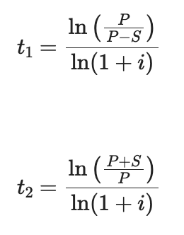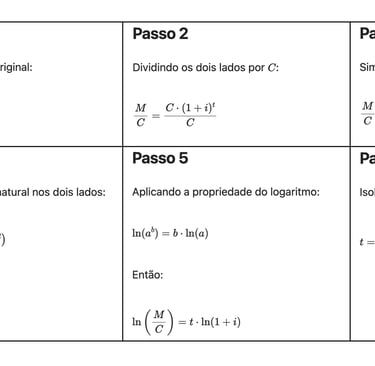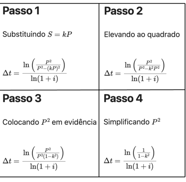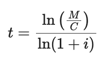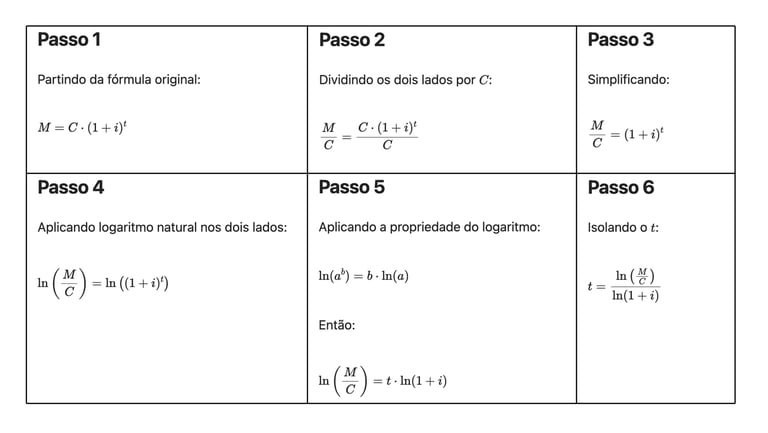 Se isolarmos o t na fórmula de juros compostos, temos: