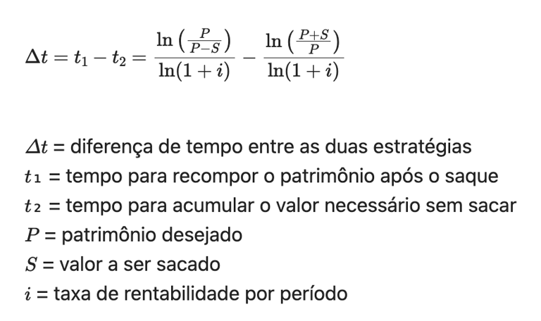 Ou seja, dependendo da sua rentabilidade, você pode gastar agora uma fatia relevante do patrimônio e, ainda assim, o custo em tempo ser relativamente pequeno.